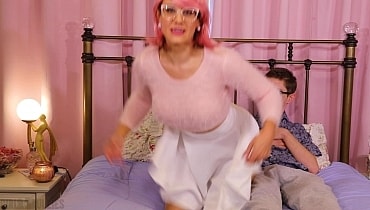 Penny and Sam are having a movie night but when Penny notices that he is wearing gray sweatpants, she warns him that the film she picked out has some pretty sexy scenes. She just wants to spare her friend the embarrassment of his boner tenting up the soft material. Sam gets offended that she thinks he would get hard so easily but Penny just tells him that everyone knows he has the cock control of a college virgin on Viagra. Sam wants to prove he has some dignity and his overconfidence makes Penny eager to see Sam make a fool of himself. They make a bet that if Sam can take a little cock teasing without a little bulge popping up in his pants then Penny will grant him one free sexual request. Of course, Penny is a lot more skilled at teasing little dicks than Sam is at resisting hot chicks. Before she is done, Penny makes Sam do something in his sweatpants that is way more humiliating than sporting a stiffy.