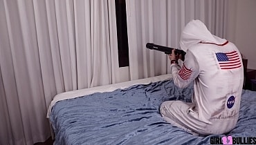 Sam is a huge science nerd so he couldn't wait to whip out his dinky little telescope for the big meteor shower. Sam's roommate, Juliette, thought it would be funny to jump in front of his telescope and flash her ass into the lens but Sam totally overreacts by yelling at her. Juliette just wanted to make a harmless joke and tease her shy roommate but she is not going to tolerate a little dick geek shouting at her. Juliette throws the whiny wuss down and sits right on his chest with her pantied pussy inches from his face. She is going to make sure he remembers that even a glimpse of her butt is more precious to a dork like him than any astronomical phenomenon. The only gazing Sam will be doing for the rest of the night is into Juliette's asshole while she cums on his face.
