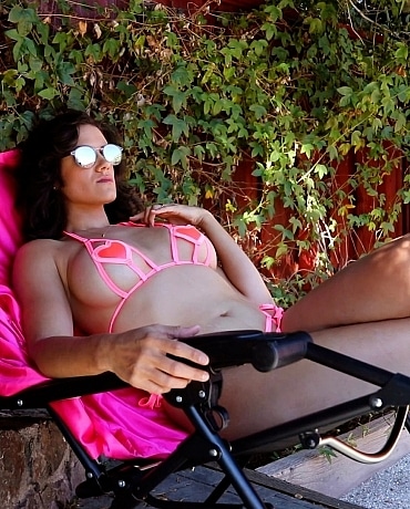 MILF next door isn’t just the hottest woman on the block, she is probably the hottest woman you know. When you saw the tiny new bikini she was wearing in her backyard you followed your boner toward a huge mistake. Now you are getting an up closer look at her amazing but only because she made you show her your dick after she caught you masturbating in her backyard. Instead of calling the cops or her husband, Penny makes you keep jerking-off while she makes fun of you. She teases you with her tits while instructing you exactly how she to touch yourself. Whenever you get close she tells you to stop and she demands you agree to mow her lawn if you want permission to finish. Penny also knows you are classmates with her step-d and she jokes about telling her all about your little backyard walking adventure. She was annoyed at having her sunbathing interrupted but Penny is actually thrilled to control the cock of a little loser boy that got caught with his pants down.