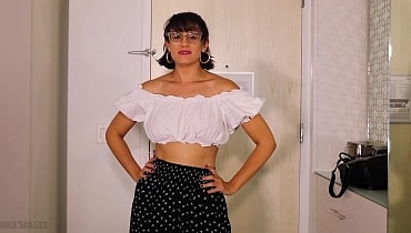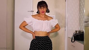 You messed up the hotel room reservation for your big work conference and now you have to beg your colleagues to crash on their floor. Unfortunately, the only one who says yes is office bully, Penny Barber, and she will only let you stay if you agree to follow her six rules. All of the rules are mean and designed to demean you but by far the worst one is that you are not allowed to wear any clothes in the room all weekend. Penny demands that you get naked before she even finishes reading the rest of the rules. She mocks your boyish underwear and undersized cock while she flashes her tits and pussy at you. It is not going to be a weekend of blue balls though, because Penny is also going to make you jerk your little dick for her amusement. If you don't want to kiss ass and cum on command then that is too bad because Rule 6 clearly states you must obey any and all instructions from Penny