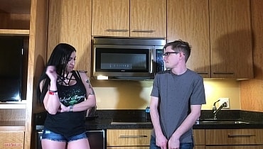 Cassandra is relaxing naked in her suite and does not wish to be disturbed so she leaves a note for the delivery guy to leave her dry cleaning hanging on the door. When she sees a little twerp sneaking around her room a few hours later she is furious and immediately calls him out as peeping tom perv. The little sneak knows he is busted and his weak excuses are just ignored by Cassandra as she easily spins him around to get a better angle for some punishment wedgies. She yanks the wuss up on his tippy toes to reveal his tighty-whities which make her burst out laughing when she sees them. Instead of getting to sneak a peak at a hot woman in the shower the dirty trespasser gets his butt crack burned and balls crushed while being mocked and humiliated for his underwear choice and cock size. Cassandra eventually makes him strip down to just the tighty-whities and even intimidates him into jerking off for her just so she can make fun of his little boner. She has a blast making him dance around with a tight-whitey wedgie leash but she finally gets bored enough to let him go free. But not until after she makes him submit to butt smothering and some apology ass kisses of course!